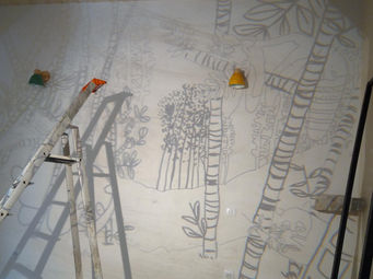 Fresque dessinée par Adèle, pour sa chambre et peinte avec elle ! 12m2